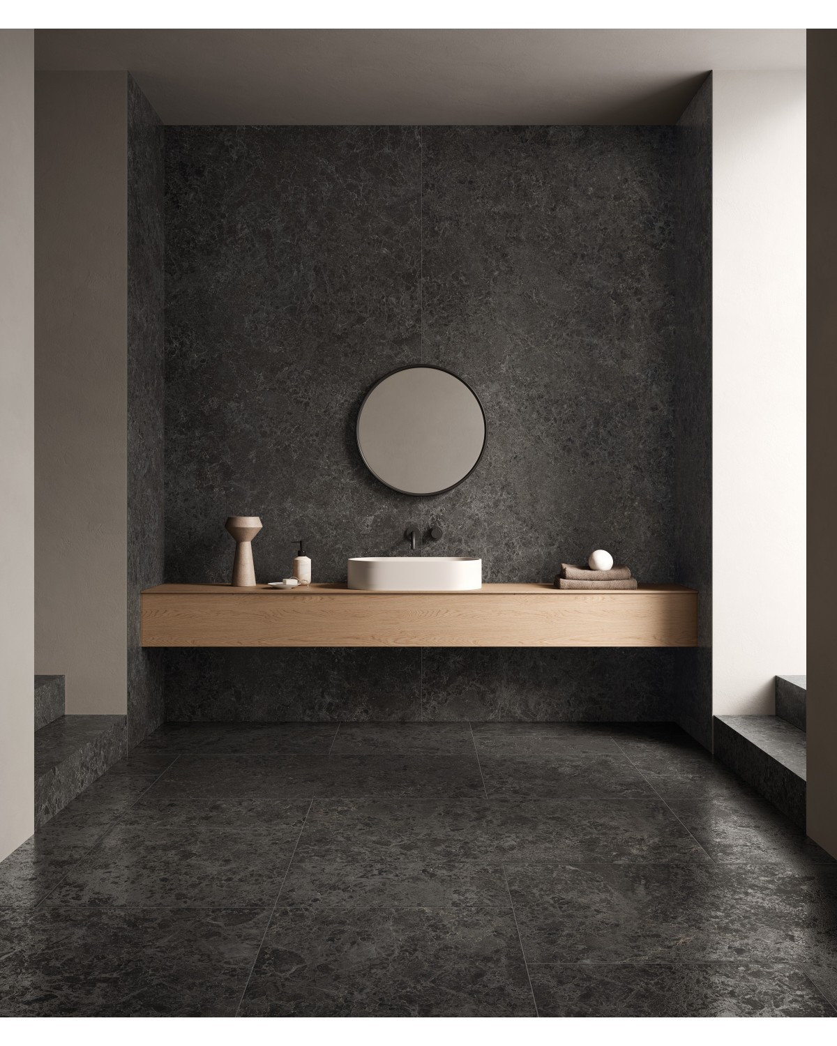 Stone effect porcelain stoneware Piemme Limestone Black 60x120cm Rectified