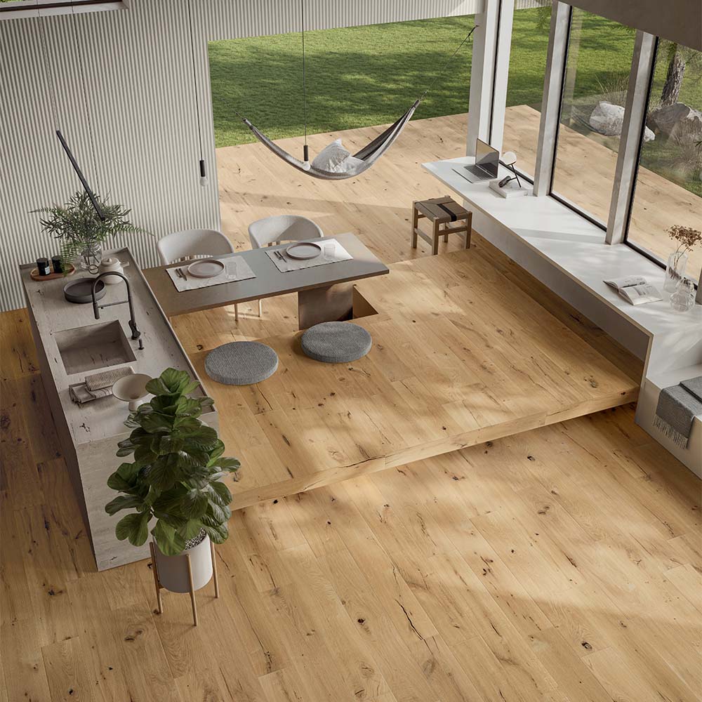 Solorovere expresses the original character of oak wood, a valuable material with timeless appeal.It has always been used in the field of interior design, and thanks to its natural appearance and golden hues it succeeds in adapting to any furnishing style, creating a harmonious environment in which modernity and tradition come together in a perfect mix.
