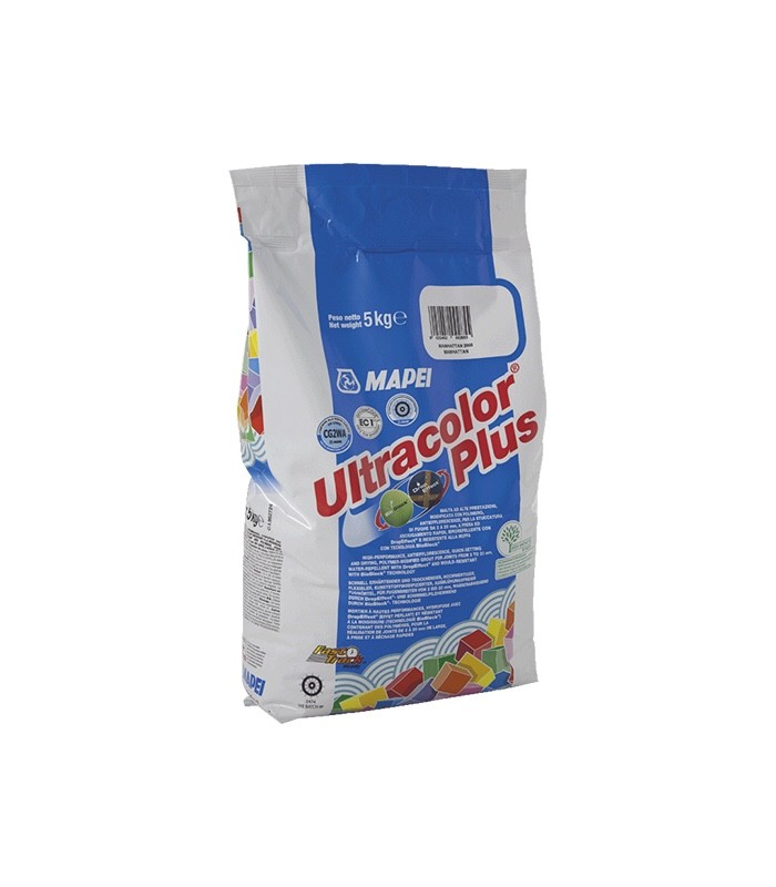 Mapei Ultracolor Plus High-performance, polymer-modified, anti-efflorescence mortar for grouting joints from 2 to 20 mm, quick-setting and quick-drying, water-repellent with DropEffect® and mold-resistant with BioBlock® technology. Commissioning: after 24 hours (48 hours for tubs and pools). Application: rubber trowel. Finishing: MAPEI sponge or Scotch-Brite® pad. EMICODE: EC1 Plus - very low emission.