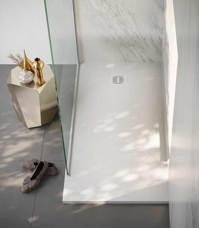 Vanita Showers Cupido Evo series with the surface pattern ensures a perfect non-slip seal, definitely more valuable than that of a traditional ceramic tray. The excitement then continues outside the shower stall: all along the side of the tray we find the same textural pattern of the surface. The new drain cover has a minimalist and refined design, giving the effect of a restyling of the entire shower tray. The new grid is offered as standard in the color of the shower tray to always offer the best product on the market.